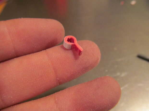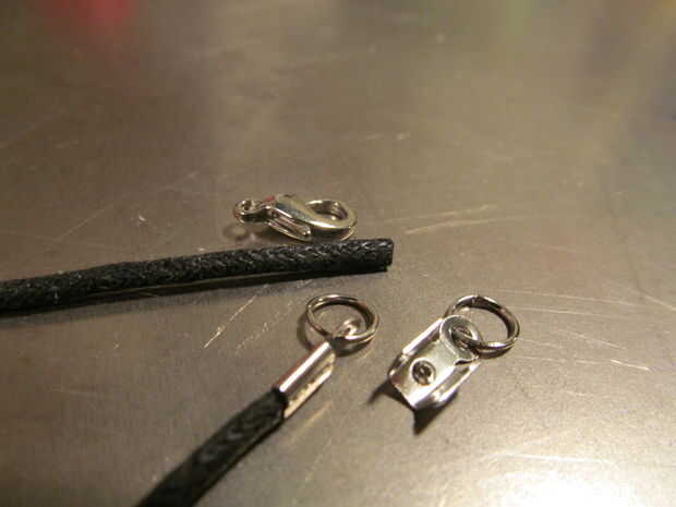 Para la moda del anillo de salto un lazo del mismo plástico y super pegue en la parte trasera de la botonera. La cuerda del algodón es un buen collar.