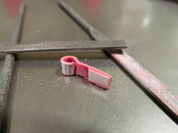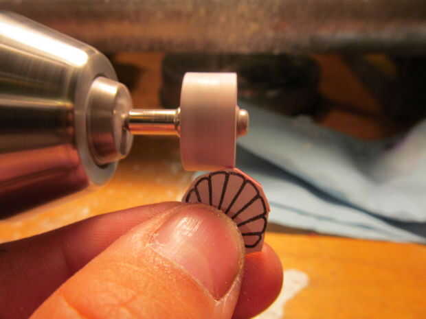 Recorte el exceso con unas tijeras. Uso de archivos y archivos adjuntos giratorios a la pieza de la forma más.