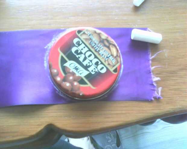 Está bien, así que primero lo que tenemos que hacer es cortar círculos en la tela. Cada círculo es un pétalo de la flor, así que asegúrese de usted recortar suficientes círculos. Trace con cuidado sobre la tela usando el objeto circular y tiza. También se puede utilizar un pedazo de jabón, deja una marca blanca que puede ser borrada fácilmente. No se preocupe si deja marcas, no sean sensibles una vez que termine.