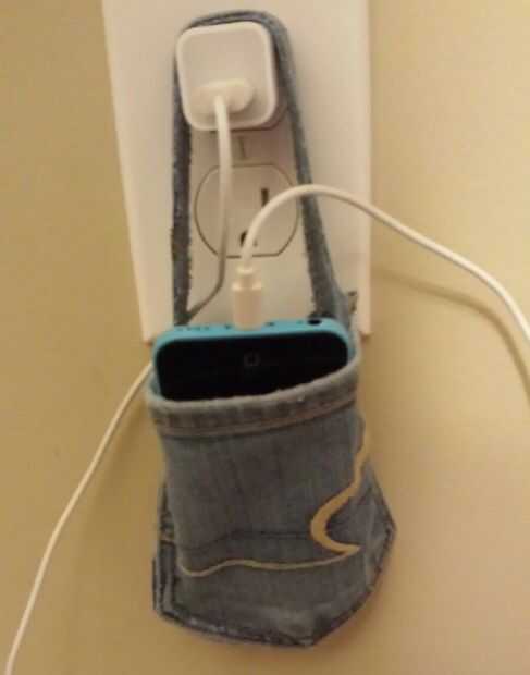 Para este proyecto en lugar de tirar un viejo par de pantalones vaqueros corte el bolsillo trasero y había realizada en un soporte para teléfono celular específicamente para cuando cargar el teléfono. Utilizando las tres r de: