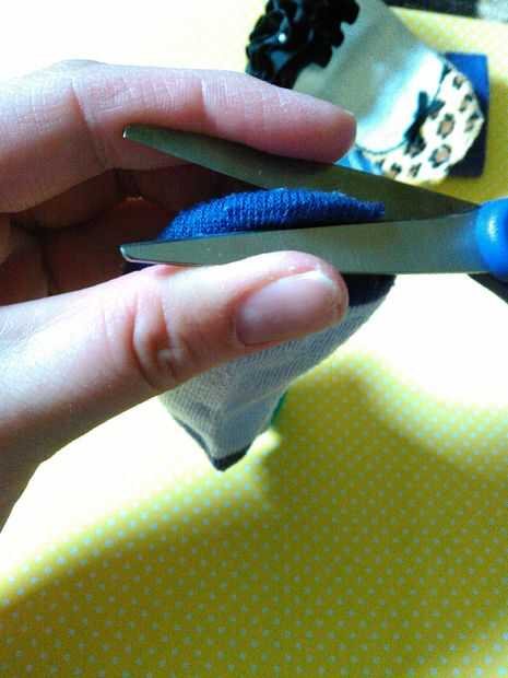 Junte los pies y cortar la mayor parte de la punta. No tomar demasiado apagado y algunos calcetines tienen las costuras en la punta del dedo del pie, que es impresionante y aún más fácil. Si la costura es la punta del dedo, vuelva al enfermo y cortar la costura (calcetín blanco es tal y como he descrito)