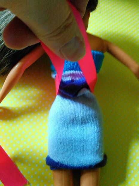 tomé dos diferentes tamaños de la cinta, algunos calcetines tienen un tacón pronunciado usé un espesor de 5/8 (rosa). Con mi recto calcetín sonic era tamaño recién nacido, utilicé 1/8 espesor. Había marcado el talón debajo de la cinta y cansado un arco luego cortarlo a mi gusto.
