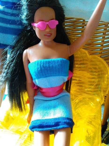 hice este vestido en mi clase de diseño de moda. ¡ Muy fácil!Todo lo que tenía que hacer era hacer un tubo básico vestido fuera de un cuadrado de 6 x 6 pulgadas de jersey azul matterial. [La mano cosida]Después de hacer este vestido de tubo, entonces