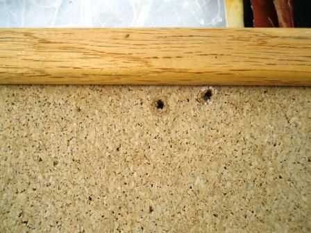Pero no demasiado! Bueno, nos estamos pegando espuma sobre él. Así, sólo saque los clavos y grapas y llamarlo bueno. Se puede lijar hacia fuera cualquier volcanes en el corcho, cosas como eso, si quieres, y si usted está realmente inspirado, puede pintar la madera adorno. Quisiera sugerir un lijado ligero, limpie con un trapo pegajoso, primer y dos capas de brillo, pero eso es sólo porque me encanta pintar.