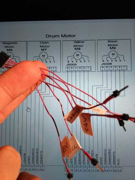 Ahora que sabes cuales son estos pines, puede utilizar el diagrama para determinar el resto de ellos. Si no tienes un diagrama, entonces yo intentaría aplicar alimentación de + 24/GND pasadores y tirar el resto baja a través de resistencias de 10kOhm. Vaya a través de cada uno a su vez, tirando a lo alto (+ 5V) a través de un resistor de 10kOhm. Una vez que encuentre el pasador que hace que el motor gire, usted sabrá que ha encontrado /DEC. El siguiente paso sería quitar las clavijas a tierra uno por uno hasta que encontrado el que hizo la parada del motor, que sería más probable ser /ACC.