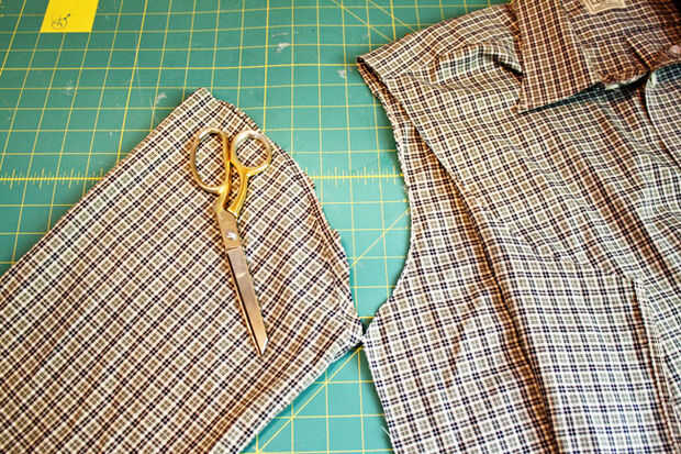 Básicamente, desarmar su camisa. Cortar la manga y los lados. No te preocupes rasgando las costuras, usted tiene suficiente tela para cortar.