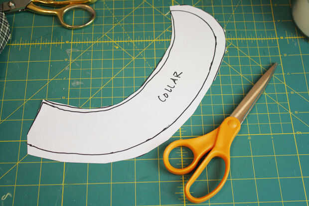 Y su patrón para su collar. Recuerde que se cortarán el borde plano en el pliegue.