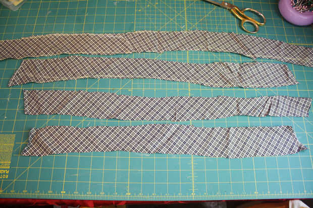 Recoger una línea en la parte superior de la manga y corte. Que ruede hacia fuera en una tira de gigante. Sólo tienes que seguir las líneas y tiene su correspondiente cinta bies.