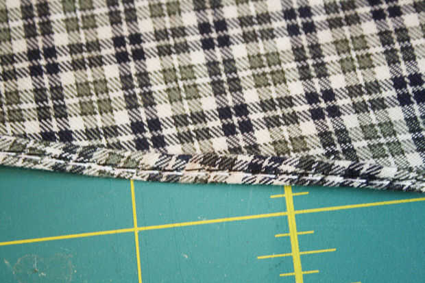 Bueno, ahora tengo la referencia despistada de mí, vamos a coser un dobladillo en la parte inferior. Para ello, doble la tela a 5/8 y coser, cortar el exceso y firmemente el borde del rodillo y coser el doblez cerca.