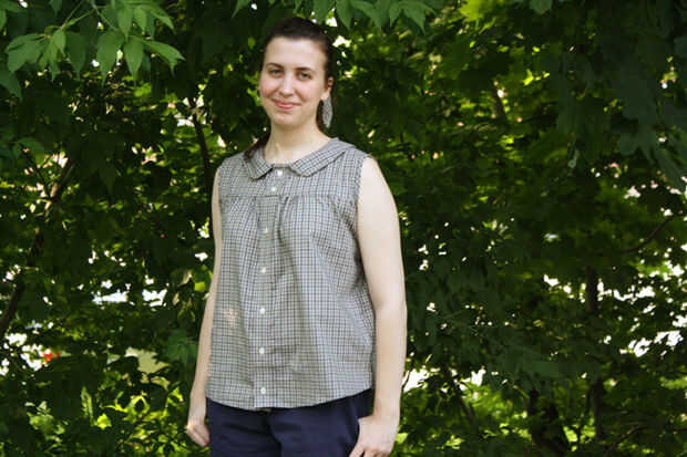 Upcycle de camisa de hombres en verano Retro blusa (35 / 35 paso)