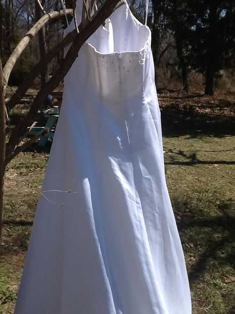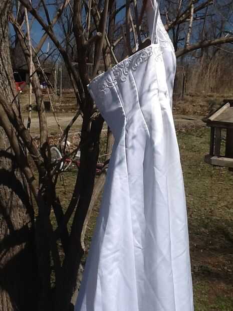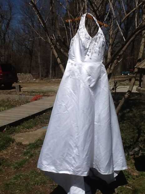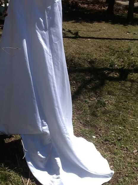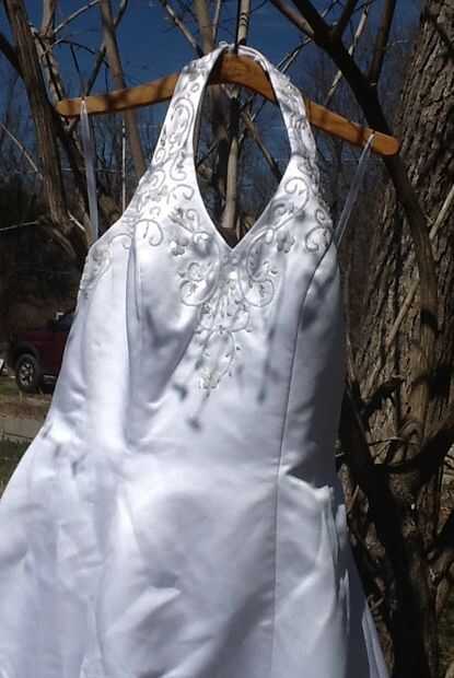 Encontré este vestido de novia en una tienda de segunda mano por $25. Yo no había planeado comprar un vestido de ese día y no estaba siquiera en busca de uno pero pero yo sabía que necesitaría una en alrededor de un año y los vestidos de novia en la tienda de economía fueron en venta 50% off tan marcada longitud les fuera y encontré este completo de cuentas belleza. Era mi talla así que lo probé y no podía haber cabe me mejor si había sido hecho para mí... SE HA VENDIDO! A pesar de que no era el estilo rockabilly que buscaba para la tapa del halterme recordó a los años 50 estilo halter vestidos. Lo tomé casa sabiendo que iba a necesita algunas alteraciones importantes, a pesar de que no había nunca alteré un vestido esto drásticamente. Necesario para cortar, mucho, puesto que era un vestido completo con un tren largo, inmovible.