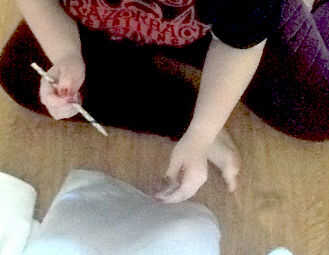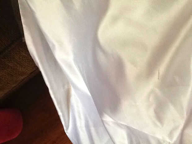 Paso 1:Marqué el vestido 22 pulgadas por encima del dobladillo.Paso 2:Además de eliminar la parte superior del vestido, quité los botones y esas cosas extraño lazo en la espalda. (En realidad les cosieron y había utilizado para mi banda de la cintura