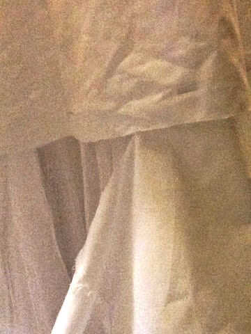 Paso 1:Marqué el vestido 22 pulgadas por encima del dobladillo.Paso 2:Además de eliminar la parte superior del vestido, quité los botones y esas cosas extraño lazo en la espalda. (En realidad les cosieron y había utilizado para mi banda de la cintura