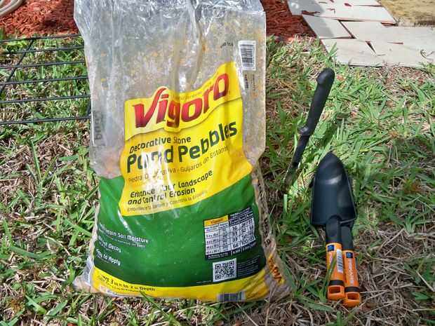 1) una bolsa de piedras, rocas, guijarros, etc., que fue utilizado para ayudar con el drenaje y asegurar mi suelo no estancarse.