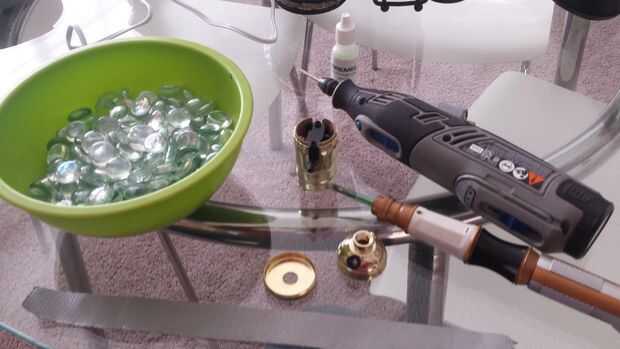 - 1 diamante recubierto de broca y fluido de corte (esto es una necesidad para la perforación de vidrio)