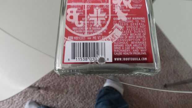 Ponemos nuestro agujero en la parte posterior de la botella en el código de barras, que queríamos mantener la etiqueta de lo más completo posible.