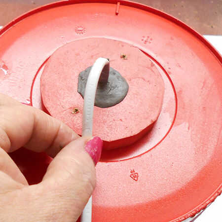 12. Coloque el soporte dentro del contenedor y el cable a través del orificio en la parte superior del hilo de rosca.
