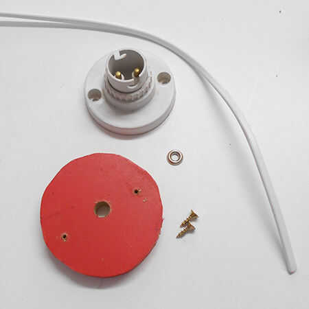 9. usted necesitará un sostenedor de la lámpara, algún cordón de apertura eléctrica - suficiente para llegar a de la lámpara hasta el punto más cercano de enchufe, un trozo de tablero de corte para el mismo tamaño que la parte superior del sostenedor de la lámpara y un par de tornillos de 16mm.