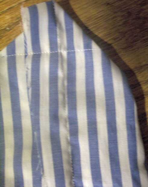 Abrir las esquinas de la bolsa al revés así que tiene un pequeño triángulo y coser todo. Hacer esto para ambas bolsas. Ahora la bolsa tiene un fondo plano y es capaz de pararse en su propio.