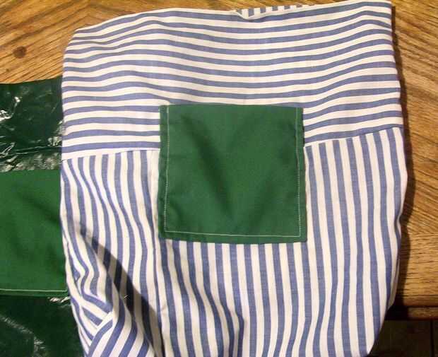 Colocar el bolsillo en la bolsa donde quiere y prender. Coser primero la tapa del bolsillo en el interior borde superior a tu bolsa. Luego vuelva a colocar la aguja y coser a lo largo de los tres lados del bolsillo. Hacer esto para ambos bolsa de bolsillos.