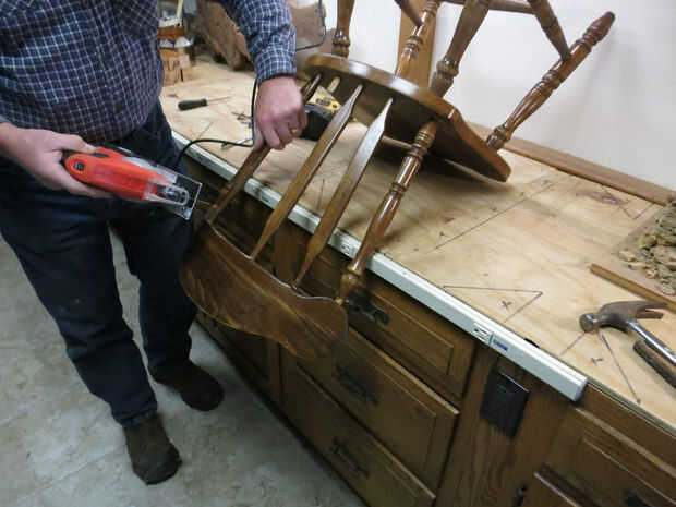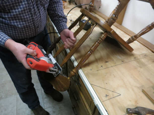 Es bastante fácil encontrar viejas sillas de madera con fondos de asiento roto. A menudo el marco de la silla es sólido, pero no un is interesado en Retejiendo la parte inferior de la punta. Cuando he encontrado 5 sillas viejas en las vigas del techo