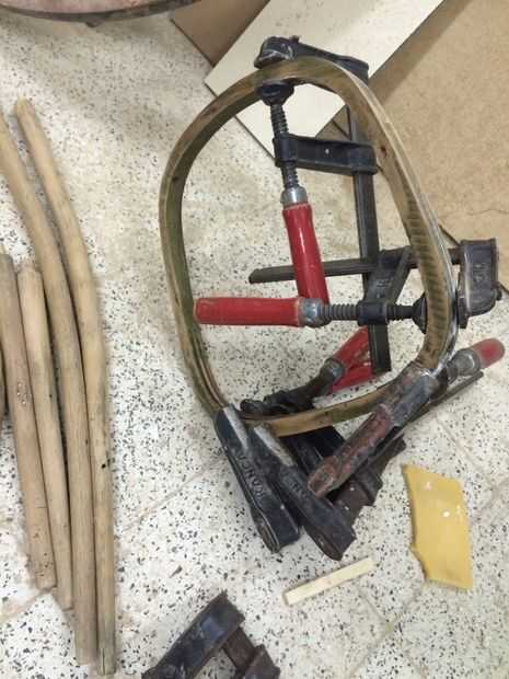 las sillas son muy viejos y reparación que las piezas quebradas fueron dañadas y pieza tenga. agrietado de las piezas de madera, deberá comprimir con la ayuda de la abrazadera y pegamento de madera y esperar 1 día