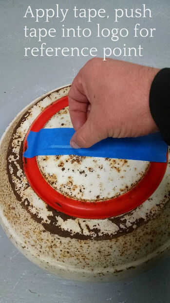 2. Obtener su punto de referencia. Para hacer esto empujó la cinta en el hueco alrededor del emblema.