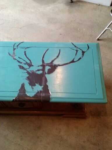 Cuando su superficie (en el resto de la pieza) ha sido preparada (lijado y limpiado) su tiempo a pintar! Escoger el color que desee y vuélvase loco. Si su plantilla se sella firmemente a la madera, no hay nada que temer. Protegerá la madera por debajo. Pintar suavemente alrededor de la plantilla y no empujar la escobilla en los bordes de la plantilla. Una vez seca la primera capa, puede ser necesario hacer otra capa. No te preocupes si no pintan sobre la plantilla sí mismo.