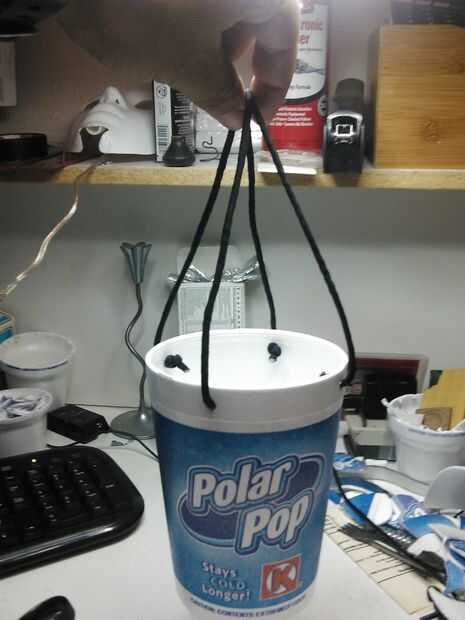 Usé 2 pedazos de cable, para distribuir el peso en la parte superior de la Copa.