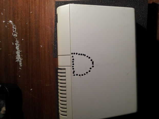Me di cuenta de una forma por pequeños agujeros por donde se fijan los tornillos de la perforación y sólo abrir la carcasa.