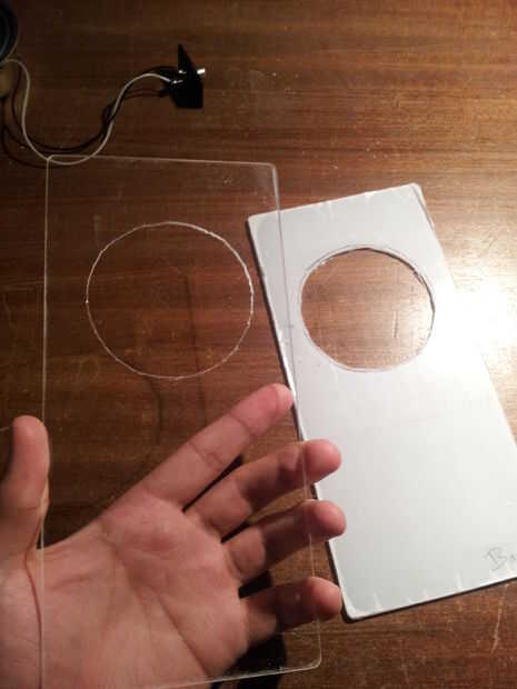 Lo primero que hice fue la misma técnica que con el suwooferspeaker. Toma tu compás y traza el diámetro del altavoz en el centro de tu acrílico. Ahora el taladro y perforar una fila de agujeros dentro de la línea trazada y empuje suavemente hacia fuera del círculo. Ahora tome la herramienta giratoria con el tambor de lijar e incluso hacia fuera del agujero. Podría desea redondear los bordes con una lija, pueden ser bastante puntiagudos!