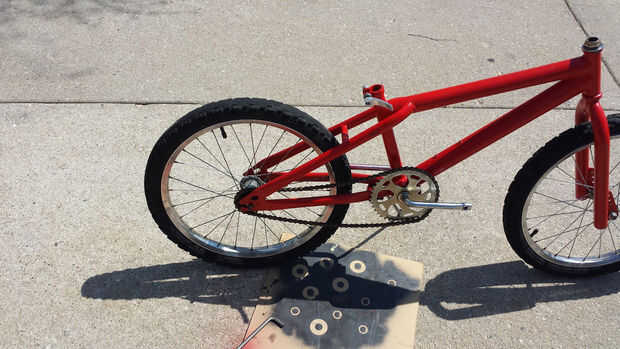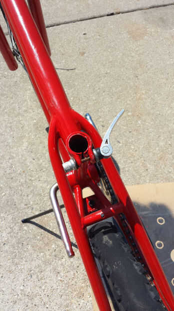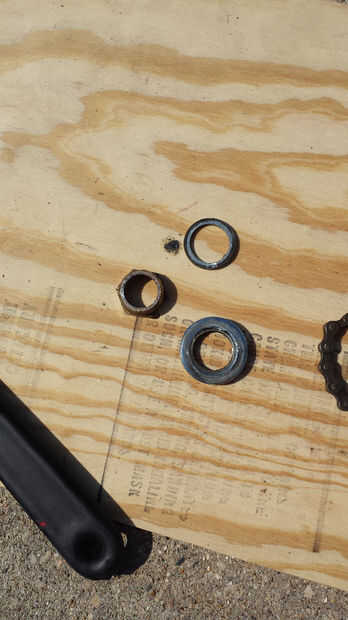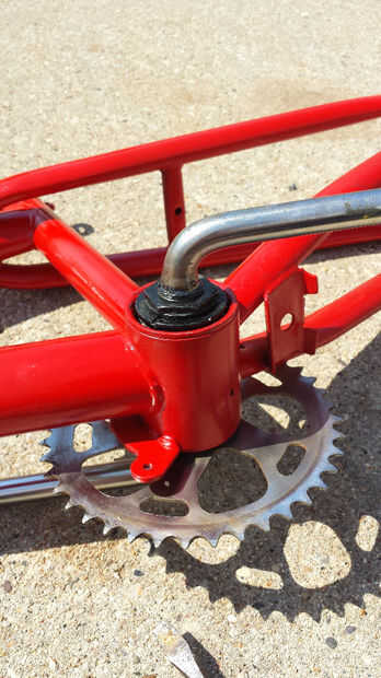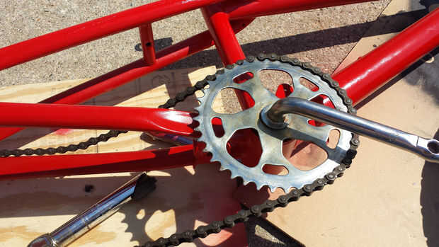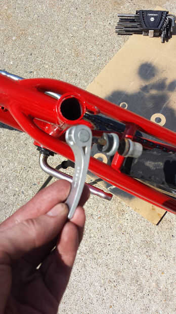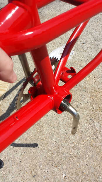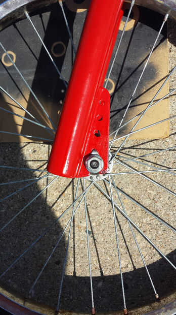 Las ruedas pueden ir en el siguiente. La rueda delantera es sencilla, sólo un par de arandelas y pernos. La rueda trasera tendrá la cadena en primera.