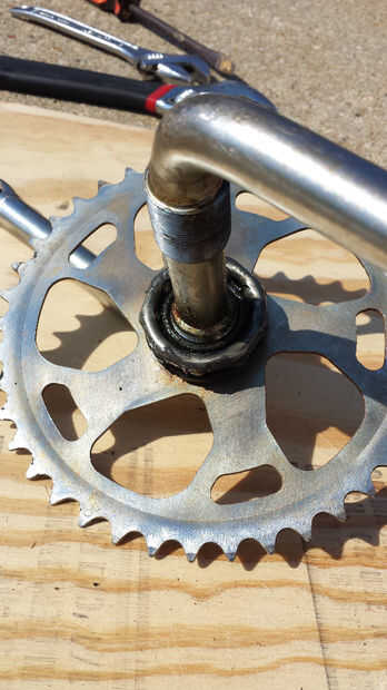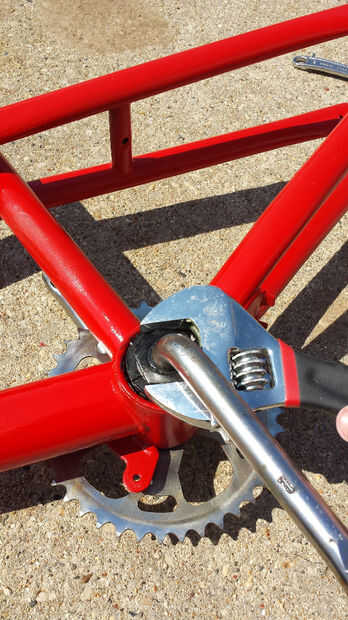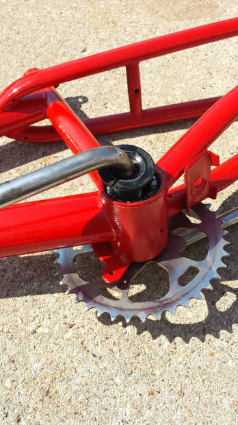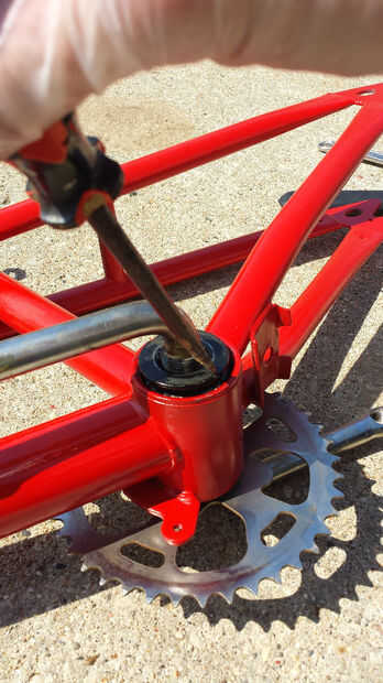 La primera parte en la bicicleta es el principal engranaje/pedales. Tras las imágenes de un rodamiento se colocará en un lado de la marcha principal que será alimentada a través de su vivienda. Otro cojinete se colocará en el otro lado y los sujetadores asociados se atornillarán sobre el uso de un destornillador y una llave.
