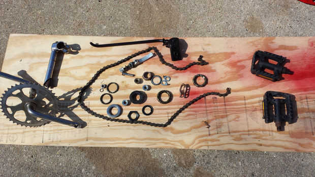 Esperemos que su bicicleta tenga piezas relativamente similares (la mayoría bicicletas baratos hacen en mi experiencia). Puse todo de mi hacia fuera en una mesa para que no olvidar nada. Asegúrese de limpiar y engrasar todos sus rodamientos y partes móviles para asegurar un suave paseo más adelante.