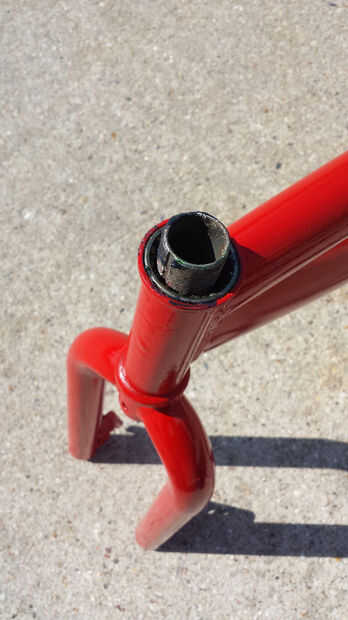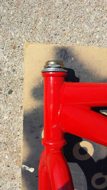 La horquilla delantera va el sujetarse a la estructura con un rodamiento en la base de la espiga de la horquilla y otro en la parte superior, seguido una vez más por los diferentes arandelas y pernos son asociados con el manejo.