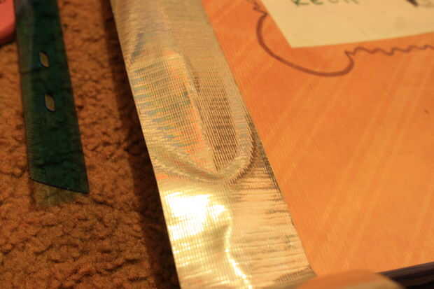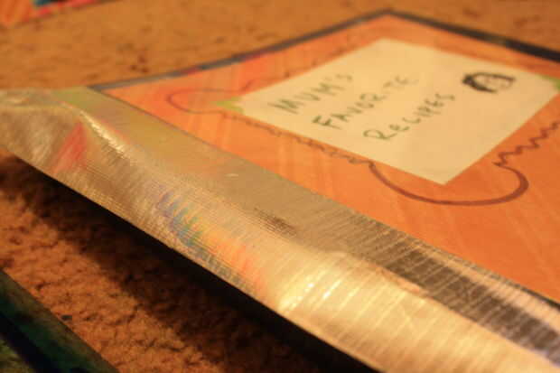 Si está trabajando con una carpeta que es un poco viejo, usted puede reparar los pliegues, bordes, etc.. Yo elegiría a cinta que es similar al color de la carpeta. No te olvides de la parte interior de cinta así. Ser creativo. :)