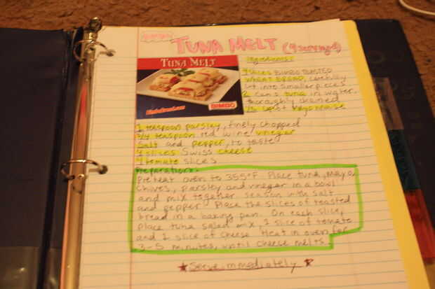 Foto 2: recetas almacenadas en un bolsillo de transparencia para la carpeta.