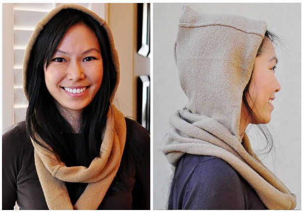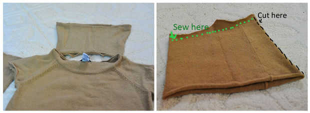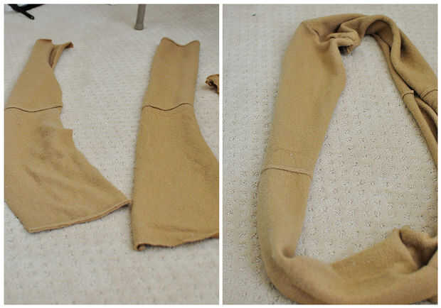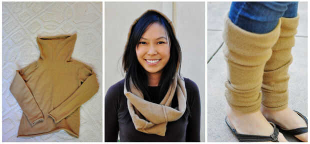 Upcycle una lana suéter en un círculo bufanda encapuchada y calentadores de la pierna