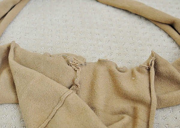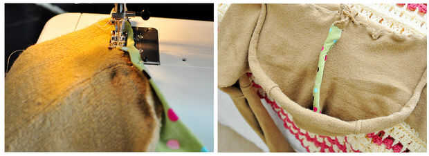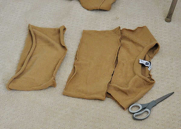 lo cool de lana es que cuando usted la pone aunque el secador fieltros lo que puede cortar el suéter sin terminar los bordes. Decidí aprovechar este suéter de fieltro y bufanda infinity con capucha y polainas con este suéter. Tuve la suerte de que se trataba de un suéter de cuello de chimenea por lo que pude hacer la campana de cuello chimenea. Si tienes un suéter que le gustaría sentir (tiene que ser lana o Cachemira) usted puede pasar por la lavadora y la secadora un par de veces.