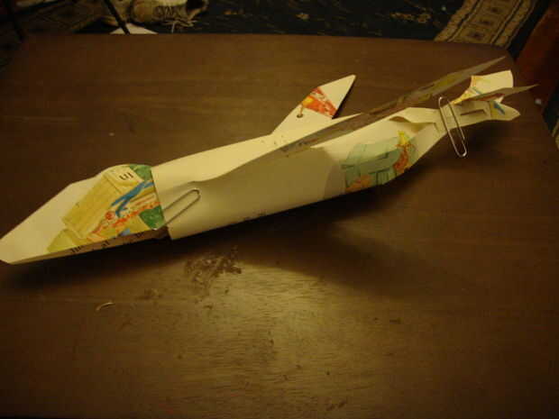 Upcycle utilizado en un Papercraft avión juguete de papel (10 / 12 paso)