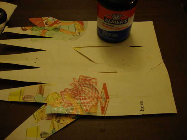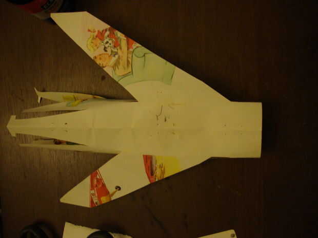 Una vez que tengas tus alas en el lugar, rodar el cuerpo del avión y encolarla. Sujete con un clip de papel a secar como te mueves.