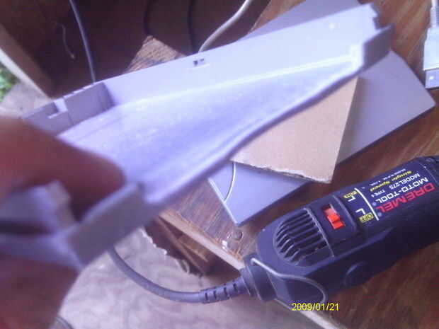 Después de un poco Dremel pulido, tengo una nueva ranura de la unidad. Un poco de lija para hacerlo suave y parejo.