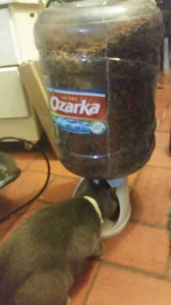 problema: Yoshi fue devorado a sí mismo en comida para gatos de su alimentador de gravedad-alimentado, ganando mucho peso incluso en pérdida de peso fórmula alimentaria y vómitos incluso de consumo excesivo (yeuagh).Solución: Un alimentador automátic