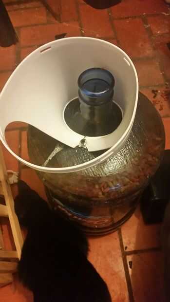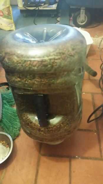 Se trata de un alimentador de gato automático basado en el taladro. Varias libras de comida para gatos se almacenan en el depósito por encima de la barrena, y el alimentador está programado para dispensar automáticamente 1/4 de taza de alimento en l