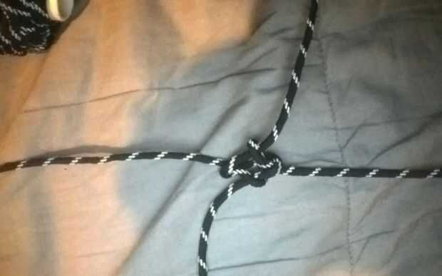 aquí dos até tres trozos de cuerda de pie y atados a tarta de hacer una red para colgar para arriba.