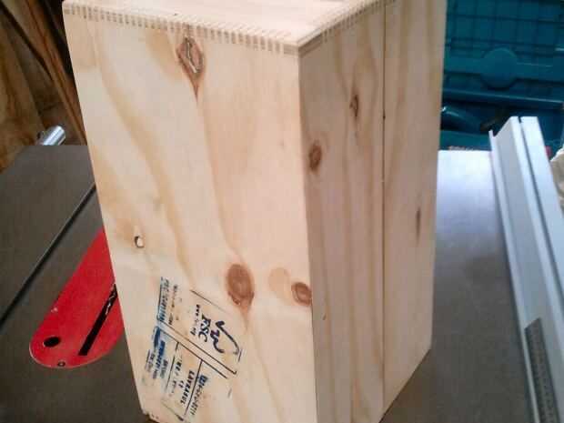 Tras hacer un montón de cajones de disquete ahora necesitamos el plegamiento gabinete. Hay muchas maneras diferentes, que esto podría hacerse, incluso de madera maciza. Este cuadro es capas, así que vamos a tomar ventaja de algunas de las características de capas en su diseño. Porque la dirección de grano en las capas (o plys) de madera contrachapada son orientada perpendicularmente entre sí, la madera contrachapada es fuerte en todas las direcciones. Por esta razón podemos hacer empalmes del dedo a lo largo de todos los bordes de una tabla si queremos - algo que nunca podría hacer con madera sólida. Por esa razón y porque son muy fuertes (y se ven cool!) usamos las articulaciones de los dedos sobre el marco externo de la caja.