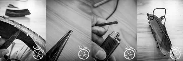 Pase el cable debajo de nuevo para que del zapato se ve como se ve en la última foto.