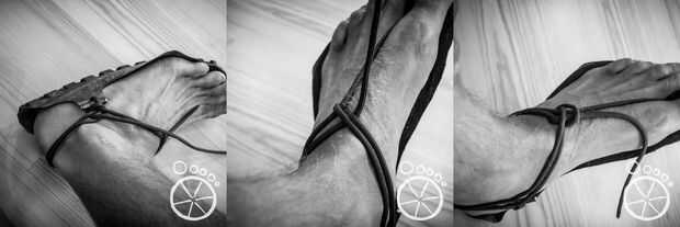 Cuadro 1: en la correa principal, alrededor del lazo y a través de los dos filamentos. el cable termina viajando al frente.