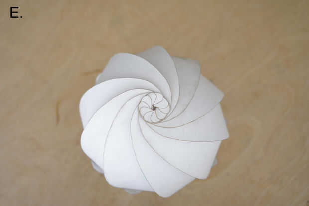 Por último, el núcleo en espiral montado como se ve en (D) y (E).