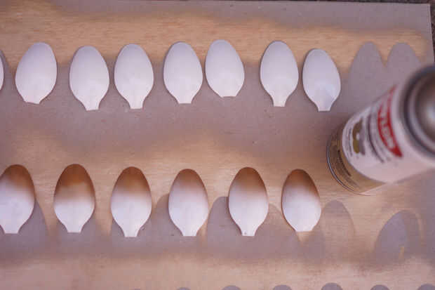 Quería algunas de las piezas de la linterna de pangolín que oro a añadir más contraste. Aquí es donde realmente se puede personalizar la lámpara a su estética. Aerosol pintado unos 60 de los consejos de la cuchara. Fue una decisión artística para pintar sólo la parte superior de la punta de la cuchara para crear un efecto degradado.